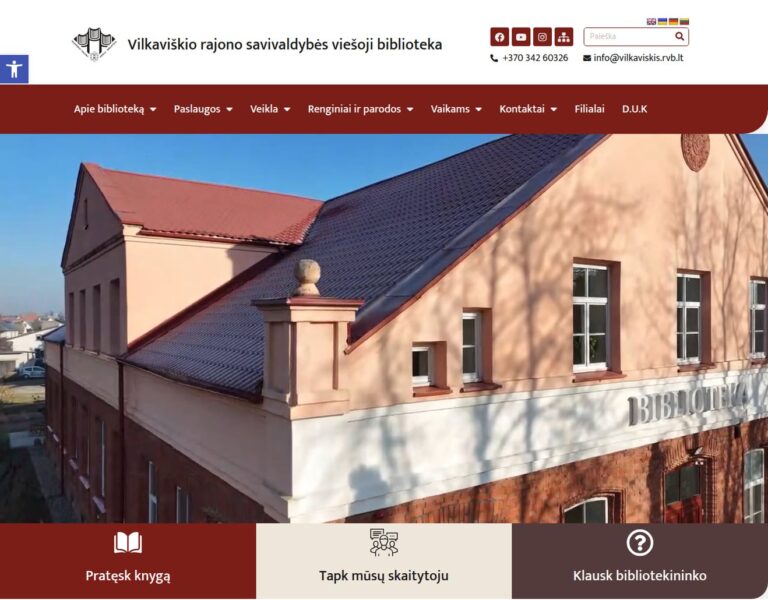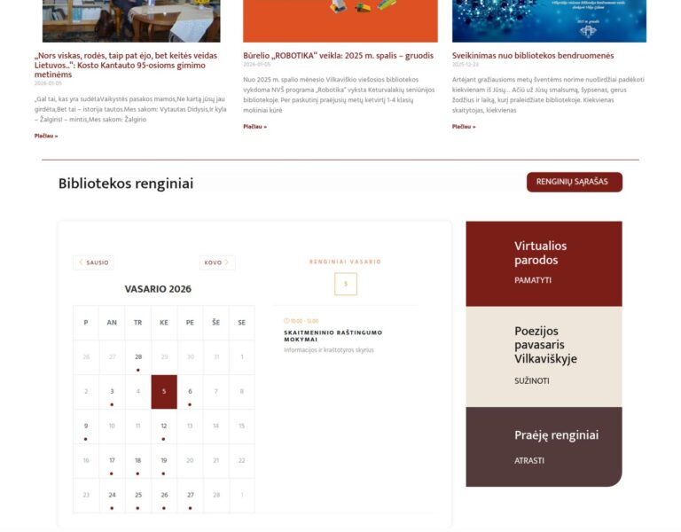 Concebemos e desenvolvemos um novo website para a Biblioteca Pública do Distrito de Vilkaviškis, de modo a tornar mais fácil o acesso online à informação, aos serviços e às atividades culturais. A plataforma oferece aos residentes uma forma mais clara e intuitiva de interagir com a biblioteca e os seus recursos.