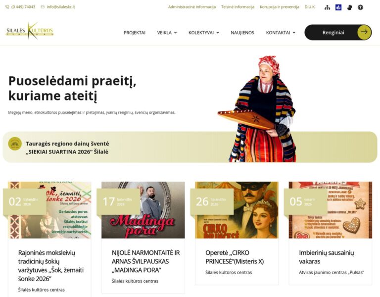 Criámos um website moderno para o Šilalė District Culture Centre, reunindo os seus eventos, atividades e papel na comunidade numa plataforma digital acessível. O projeto ajuda a organização a apresentar o seu programa cultural de forma clara e a tornar a informação mais fácil de encontrar para residentes e visitantes.