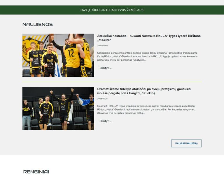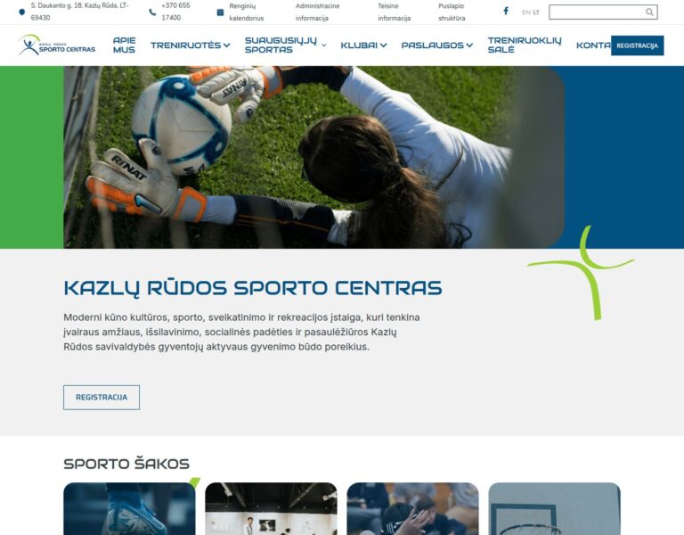 Criámos um website moderno para o Centro Desportivo de Kazlų Rūda que apresenta as suas instalações, actividades e eventos de forma clara e acessível. A plataforma ajuda os residentes locais a encontrar rapidamente informações e incentiva uma participação mais ampla no desporto e no lazer activo.