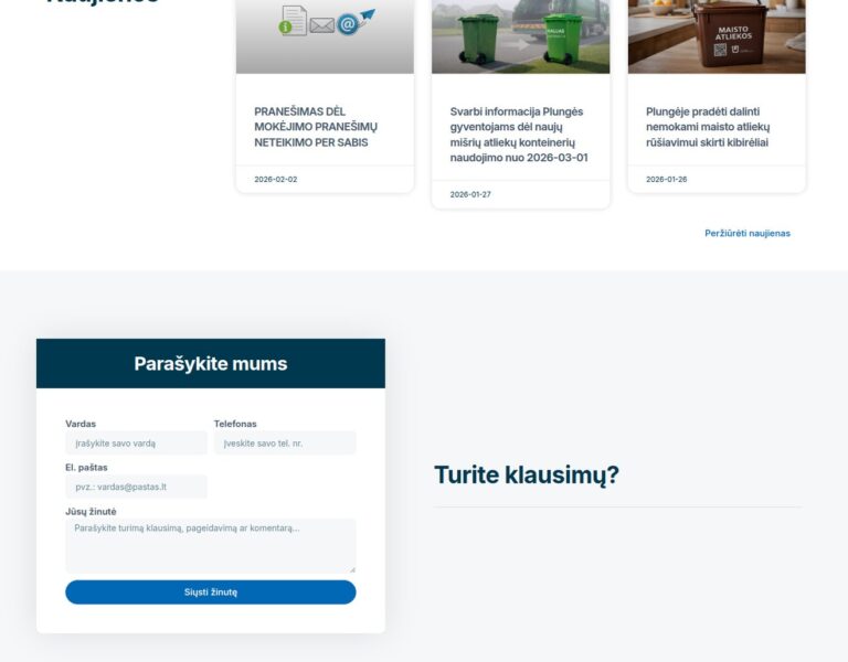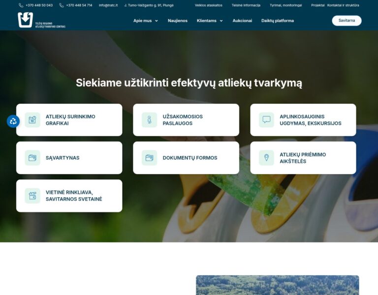 Concebemos e desenvolvemos um website moderno para o Centro de Gestão de Resíduos da Região de Telšiai, para tornar mais fácil o acesso a informação essencial sobre gestão de resíduos. A nova plataforma ajuda residentes e organizações a compreender os serviços, os processos e as opções de eliminação sustentável disponíveis em toda a região.