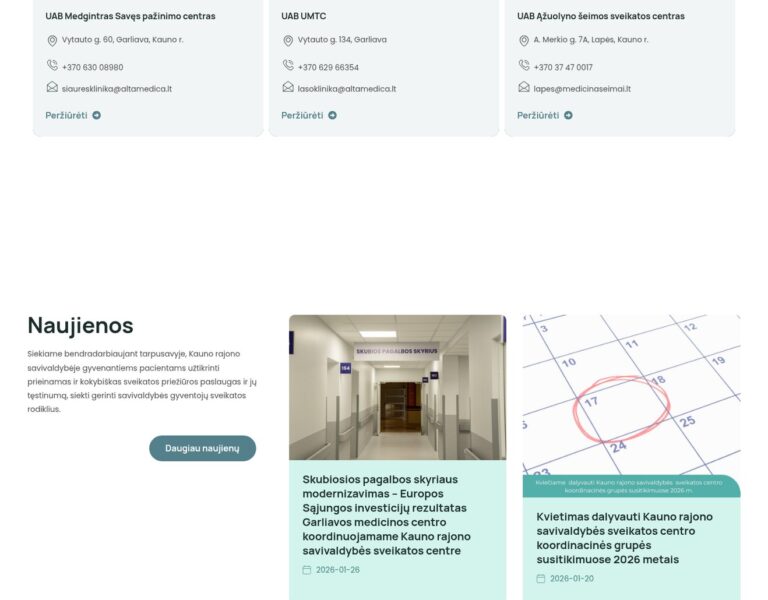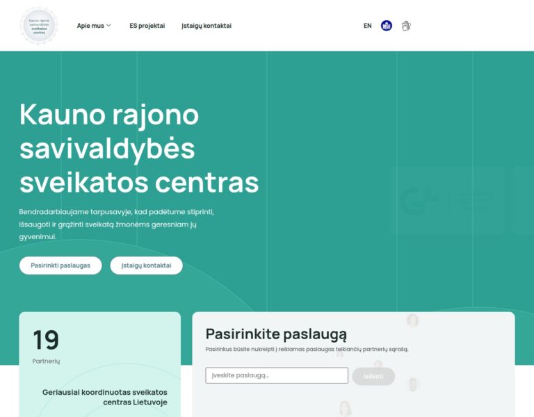 Concebemos e desenvolvemos um website moderno para o Centro de Saúde da Câmara Municipal do Distrito de Kaunas, de forma a tornar mais fácil o acesso a informações essenciais sobre cuidados de saúde. A plataforma ajuda os residentes a encontrar serviços, a compreender a oferta do centro e a contactar a instituição de forma mais eficiente online.