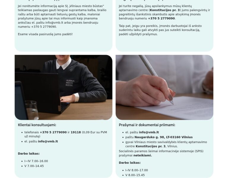 Concebemos e desenvolvemos um website claro e acessível para a Vilnius City Housing, para ajudar os residentes a encontrar informação e a aceder mais facilmente aos serviços relacionados com habitação. A plataforma apoia a missão de serviço público da instituição, tornando os conteúdos essenciais simples, inclusivos e fáceis de utilizar.