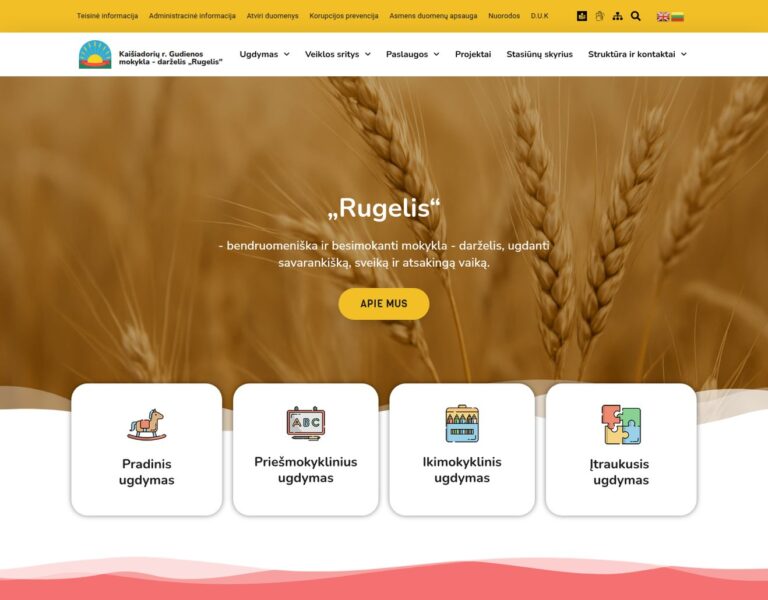 Criámos um website claro e moderno para o Jardim de Infância e Escola Rugelis, em Gudiena, para ajudar a instituição a apresentar a sua oferta educativa online. O novo site facilita o acesso dos pais e da comunidade em geral a informações importantes, mantém-nos informados e promove o envolvimento com a vida escolar.