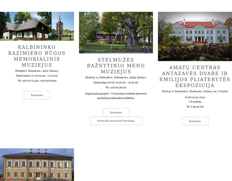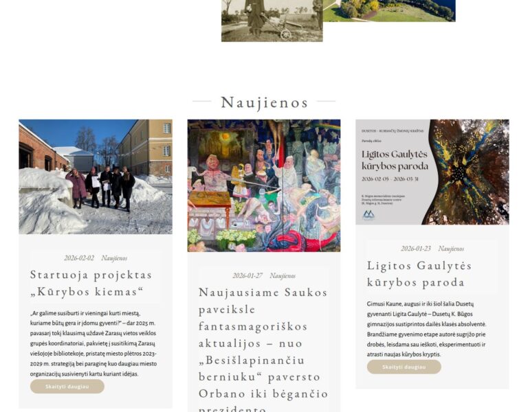 Criámos um website moderno para o Museu Regional de Zarasai, que apresenta a história da região, as exposições e a atividade cultural num formato claro e apelativo. O projeto confere ao museu uma presença digital mais forte e facilita a descoberta do que está a acontecer por parte dos residentes locais e dos visitantes.