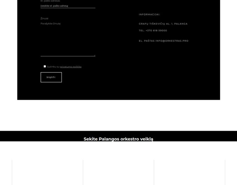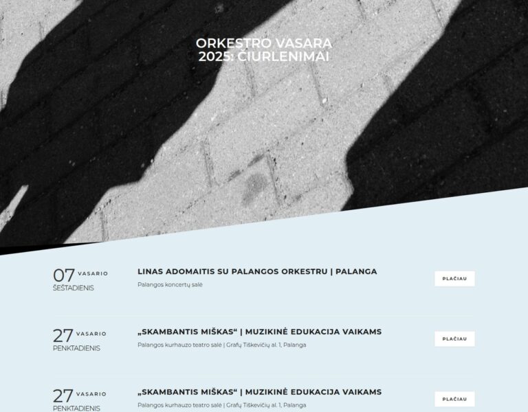 Concebemos e desenvolvemos um website para a Orquestra de Palanga, que apresenta o seu programa de concertos, notícias e atividade cultural num formato claro e apelativo. A plataforma ajuda a organização a comunicar de forma mais eficaz com o público e facilita aos visitantes a descoberta de eventos e a compra de bilhetes.