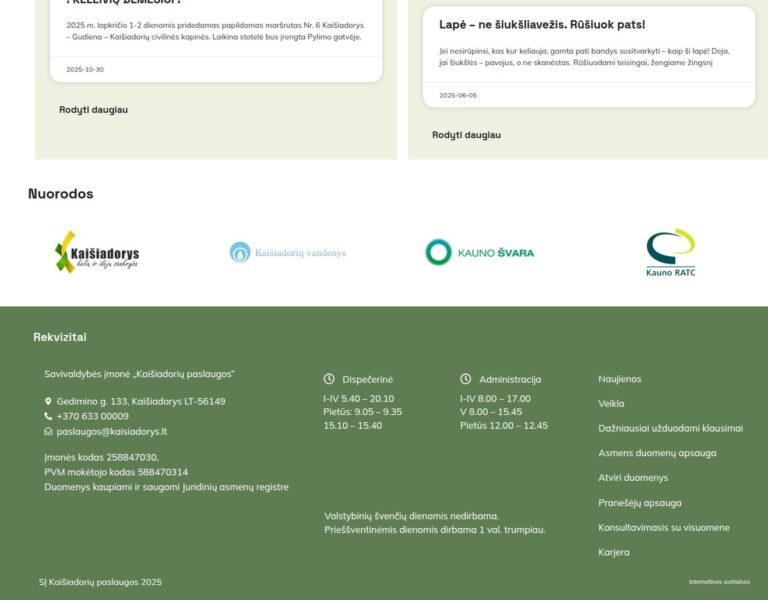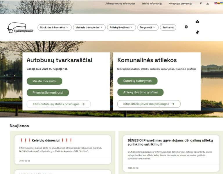 Criámos um website prático e fácil de utilizar para a Kaišiadorys Services, que ajuda os residentes a encontrar rapidamente os horários dos serviços e as informações de entrega. A plataforma torna mais acessíveis os detalhes essenciais dos serviços públicos, apoiando uma comunicação mais clara entre a organização e a comunidade local.